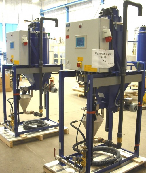 Varje enhet innehåller en fyllningsstation med vakuumtransportör, multiskruvmatare